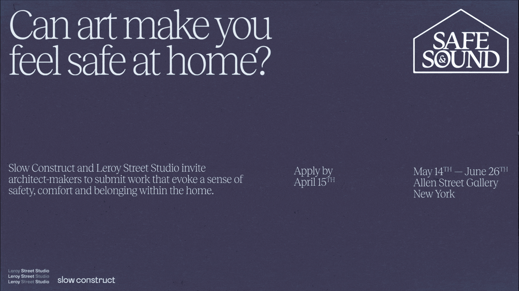 Slow Construct in collaboration with Leroy Street Studio is hosting an open call for Safe & Sound, an exhibition at Allen Street Gallery from May 14 – June 26, 2026.